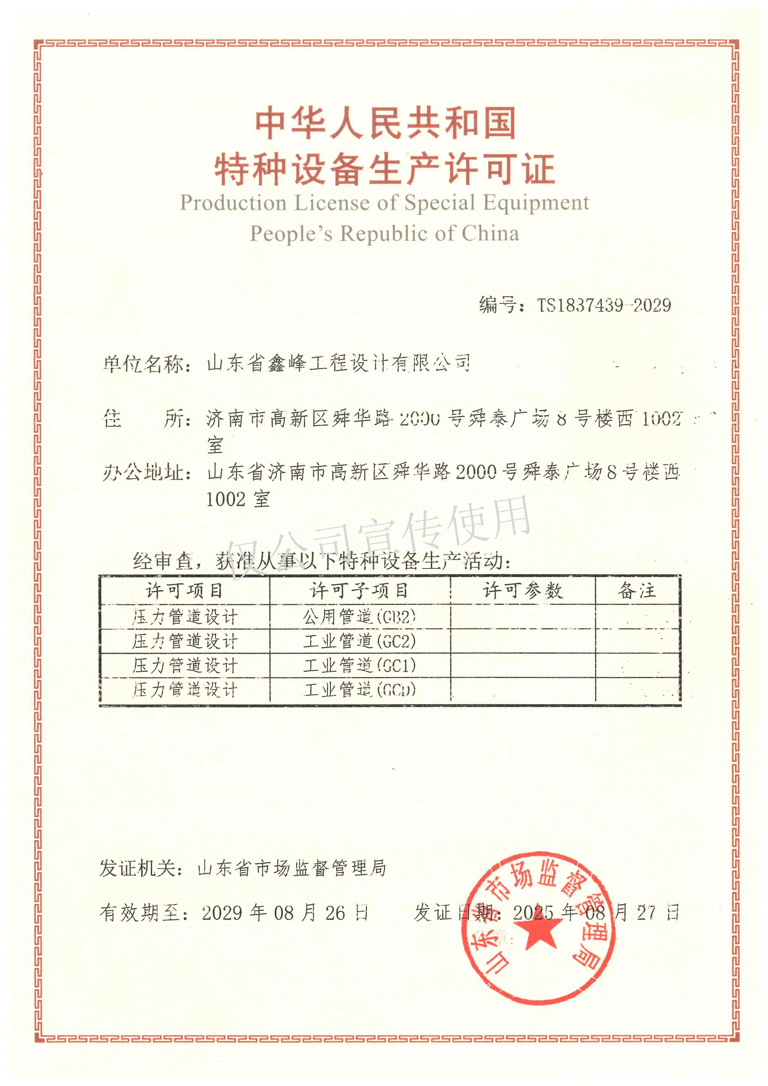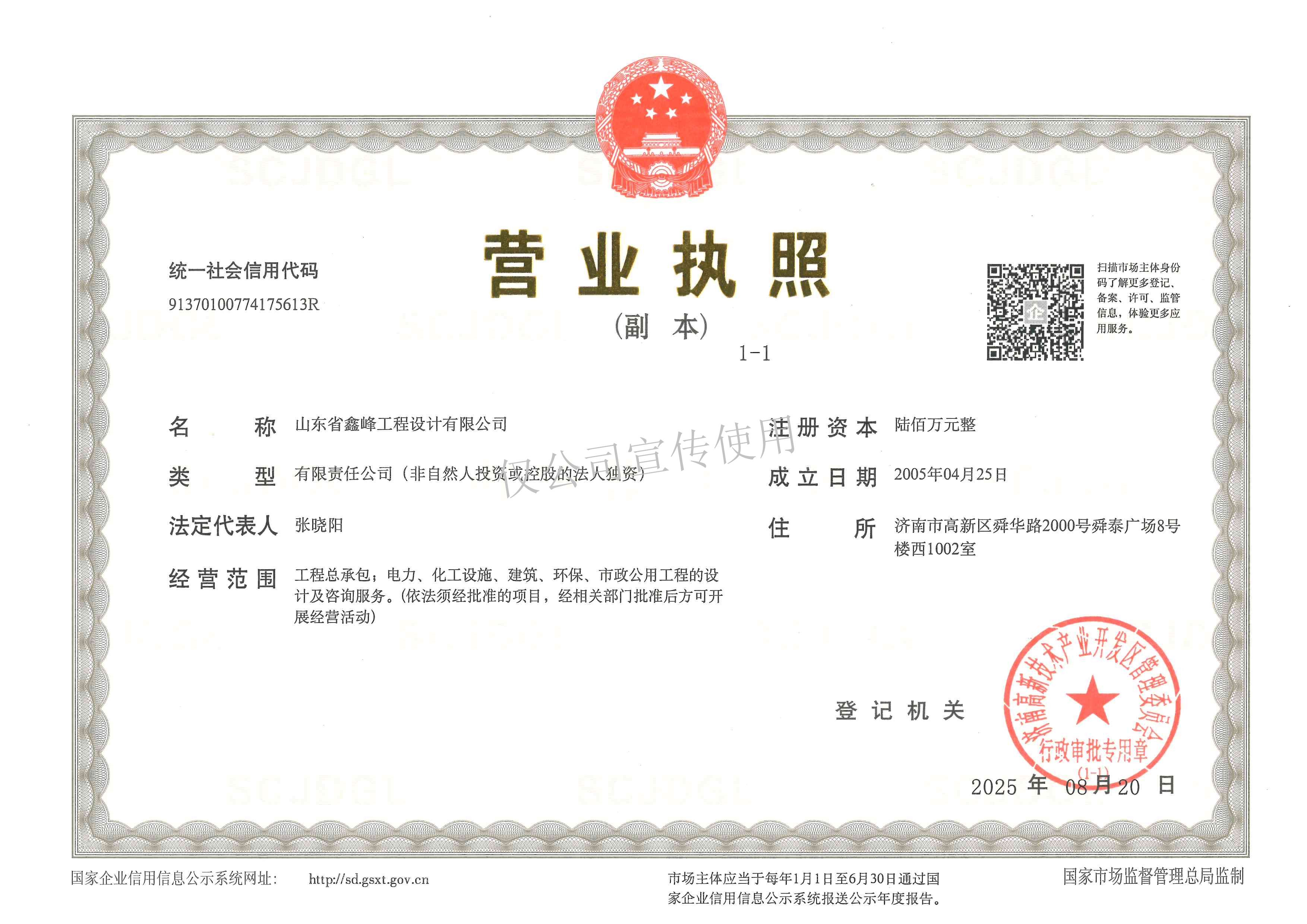 山东省鑫峰工程设计有限公司是集电力、建筑、化工、环保、市政公用工程设计及咨询于一体的综合性设计单位。目前拥有:
